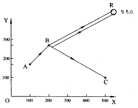例:如下图,加工后刀具已定位到A(100,170) 点,取B(200,270)点为中间点,C(500,100) 点为执行G29时应到达的点,程序如下: