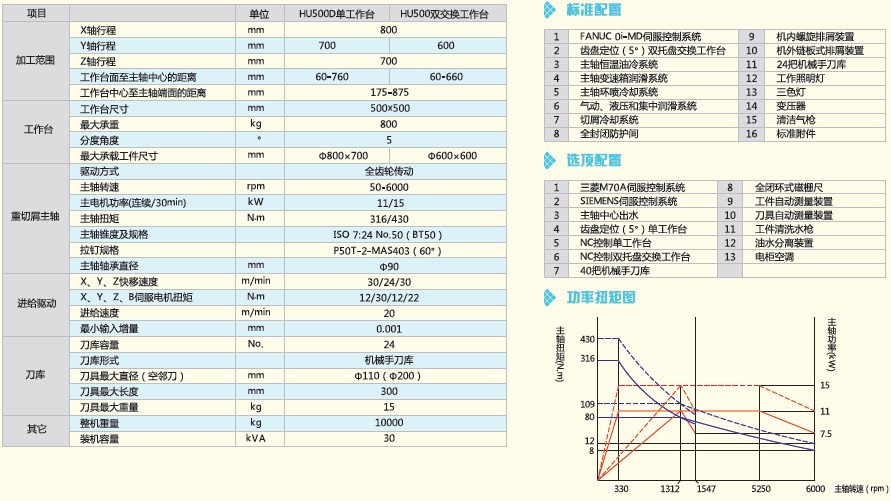 HU系列卧式加工中心采用十字滑台结构,三轴配置重载圆柱滚子线轨,具有高效、高稳定性、高性价比等优点。主轴箱采用两档齿轮变速,能够提供重切削所需的低速高扭矩,同时还具备以较高的转速进行表面精加工的能力。标配圆盘式机械手刀库和双托盘交换工作台,大大提高了加工效率。并且客户客户根据各自的加工需求选择齿盘定位或NC控制旋转工作台。